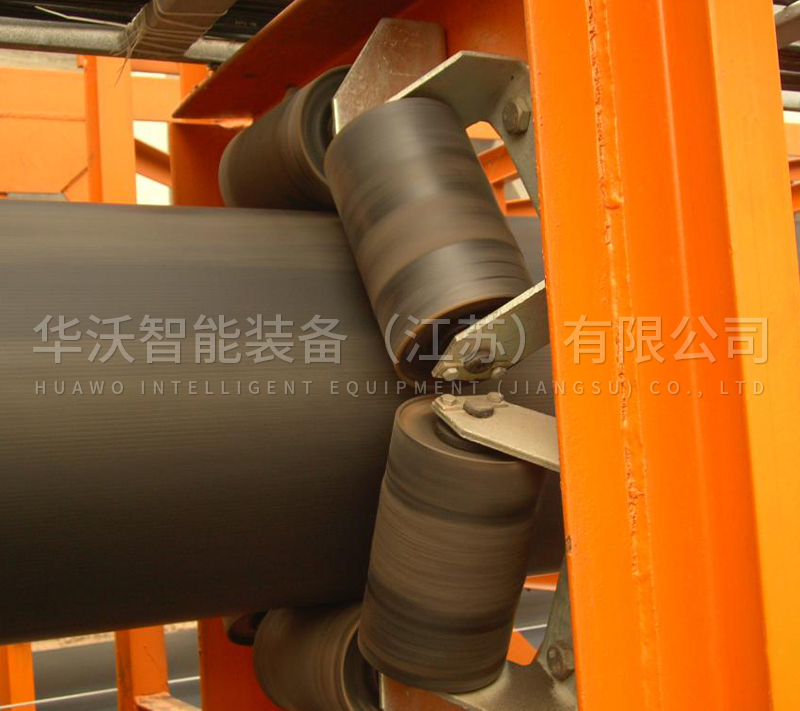 3、管式带式输送机的胶带是由托辊卷成圆管状的,避免了输送带发生跑偏的状况。